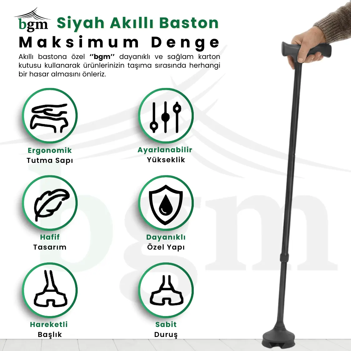 Siyah Akıllı Baston- Asa- Yüksek Kalite Denge Bastonu Siyah