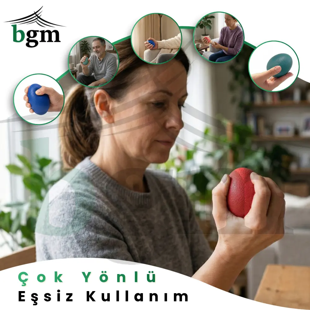 Ergonomik form, yalnızca sıkma egzersizlerinde değil; parmak sıkıştırma, başparmak çalışmaları, bilek yönlü baskı hareketleri ve farklı el pozisyonları ile yapılan egzersizlerde de rahatlık sağlar. Kullanıcı topu hem sağ hem sol elde rahatlıkla kullanabilir.