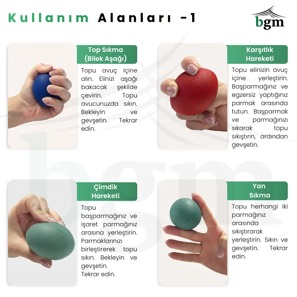• Avuç içi sıkma: Top avuç içine alınır, kontrollü şekilde sıkılıp gevşetilir.