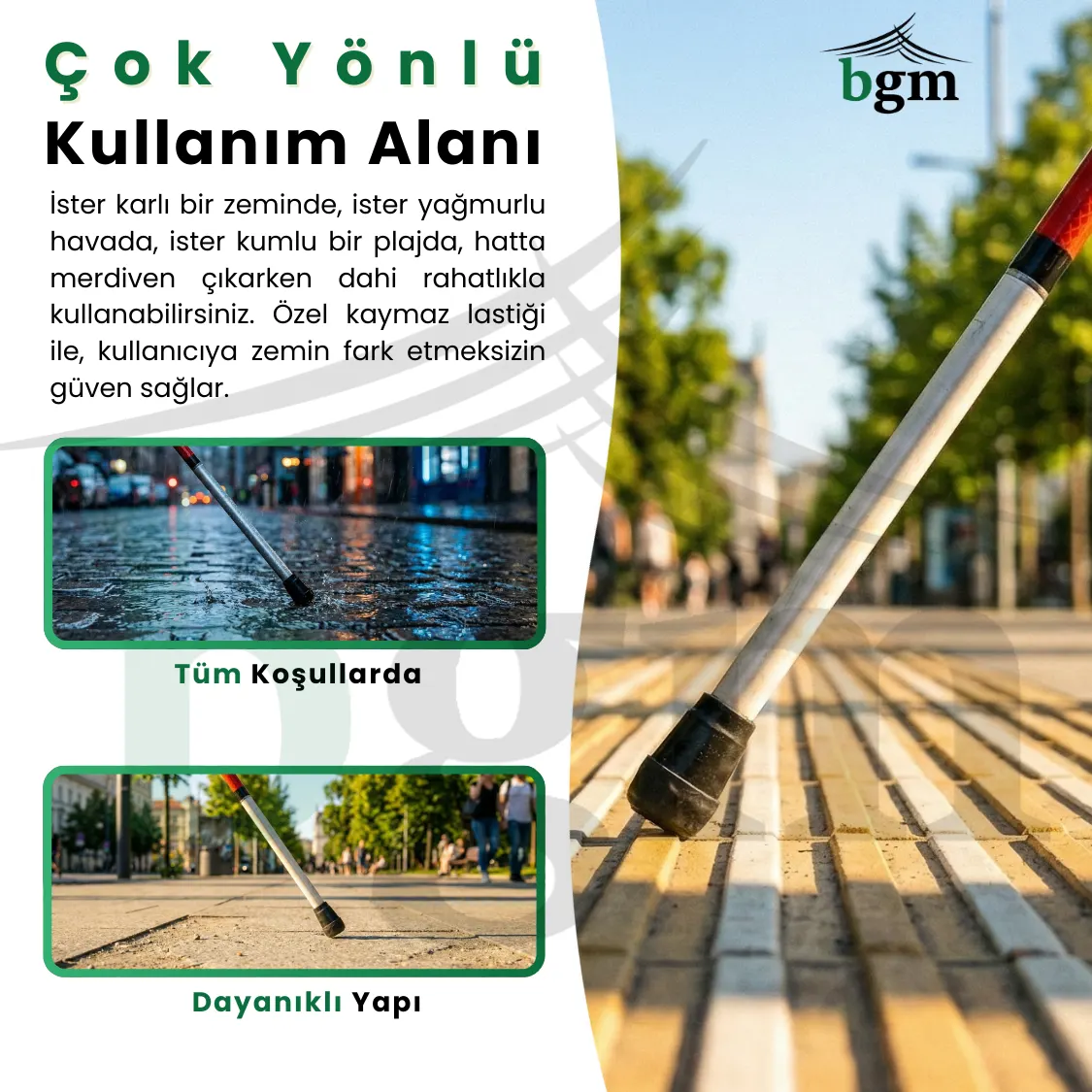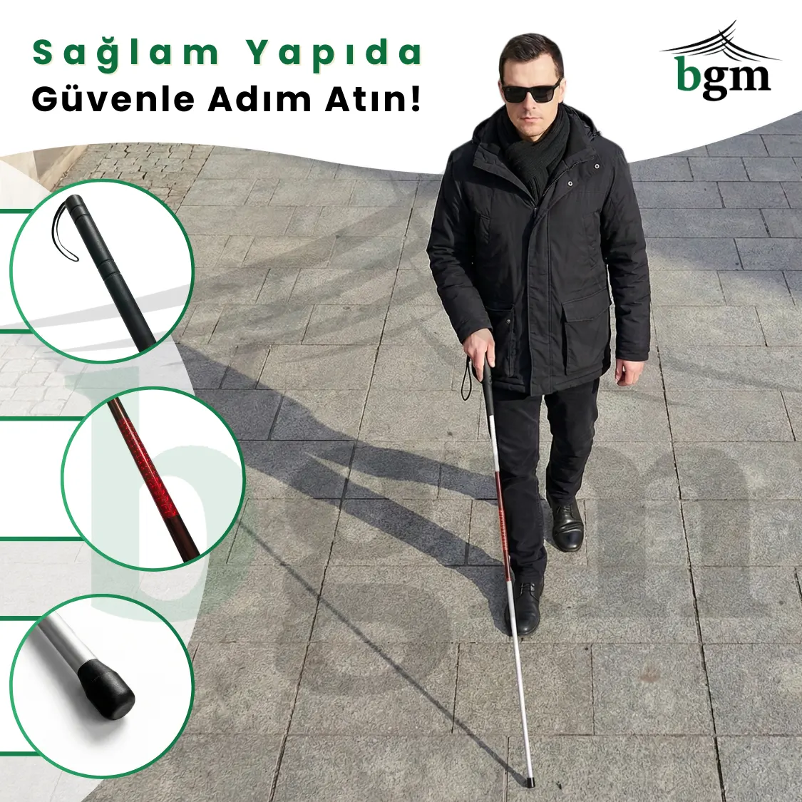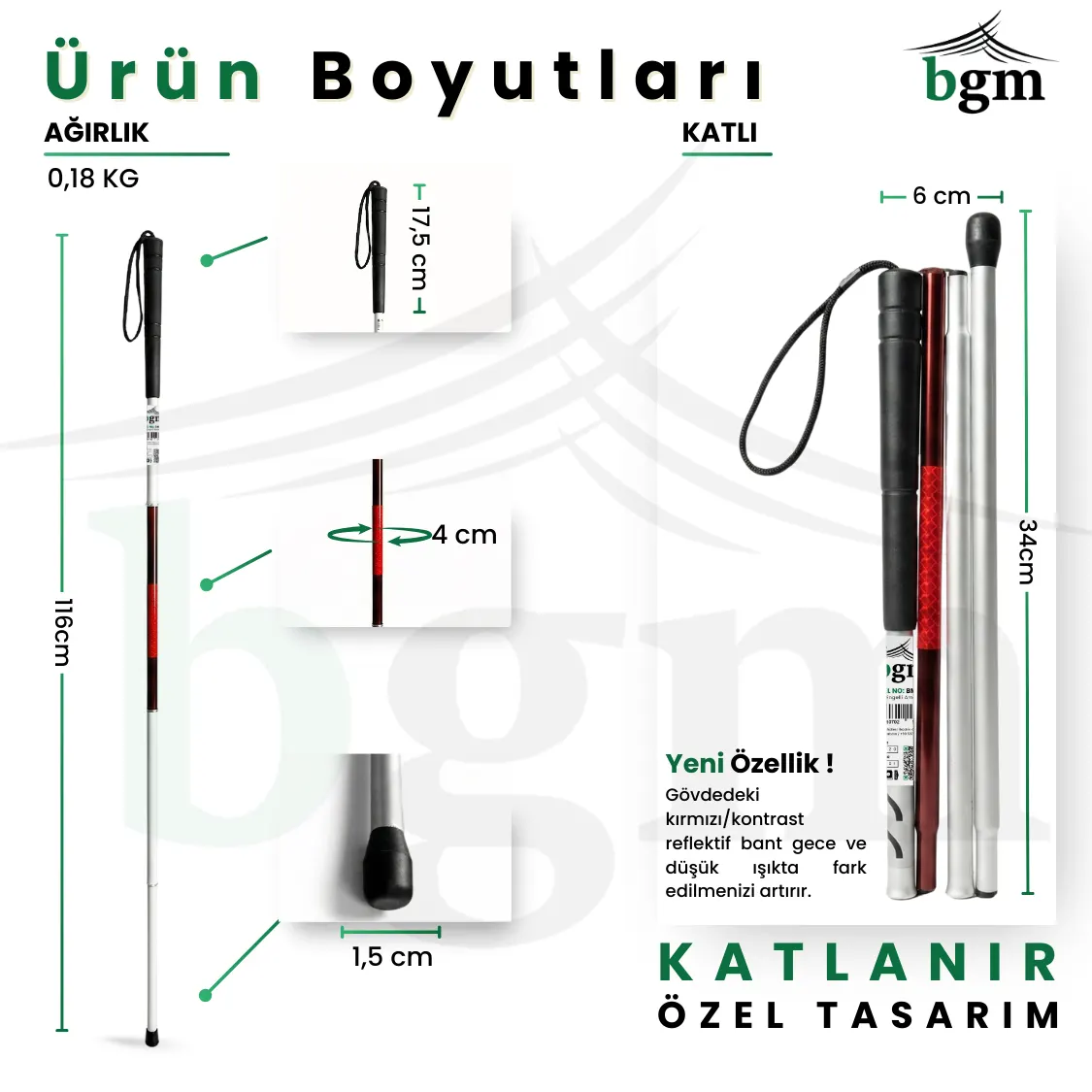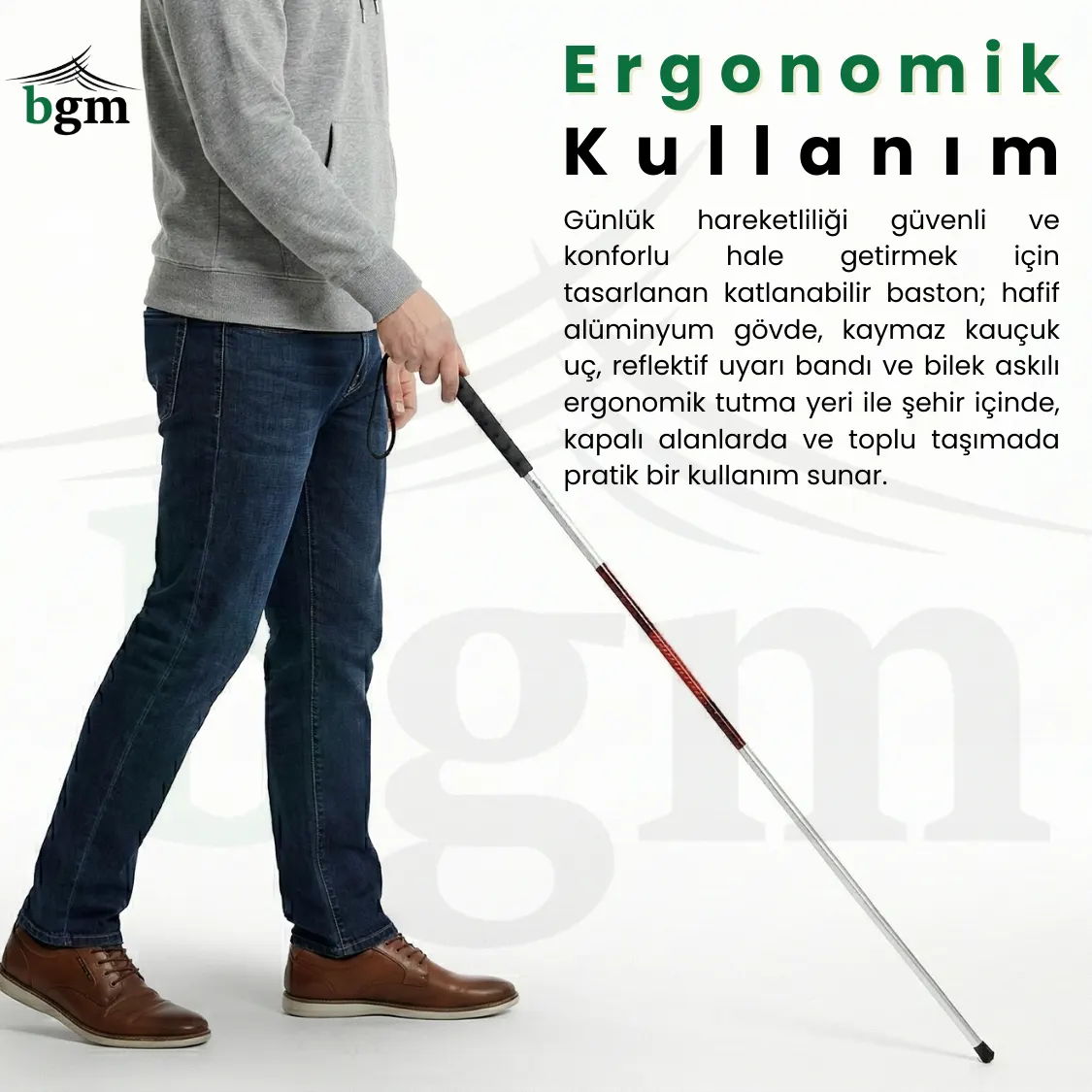 BGM Katlanabilir Görme Engelli Bastonu – Standart Boy (Reflektif Bantlı, Kılıflı)