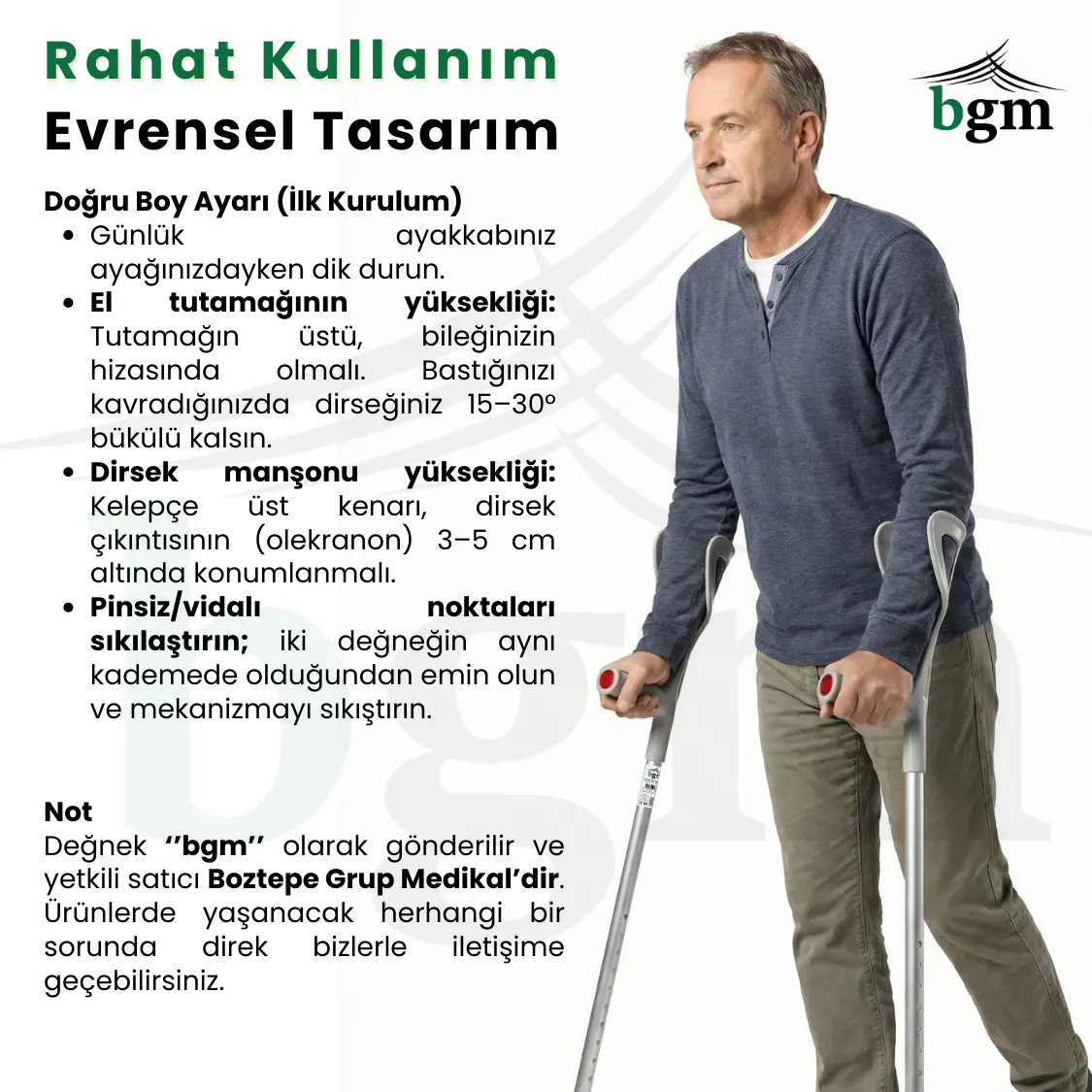 Uyarı / Sorumluluk Reddi: Bu içerik tıbbi tavsiye değildir. Kişisel durumunuza uygun kullanım tekniği ve ağırlık aktarımı için doktorunuz veya fizyoterapistinizin talimatlarını izleyin. Çocuklarda yetişkin gözetimi zorunludur.